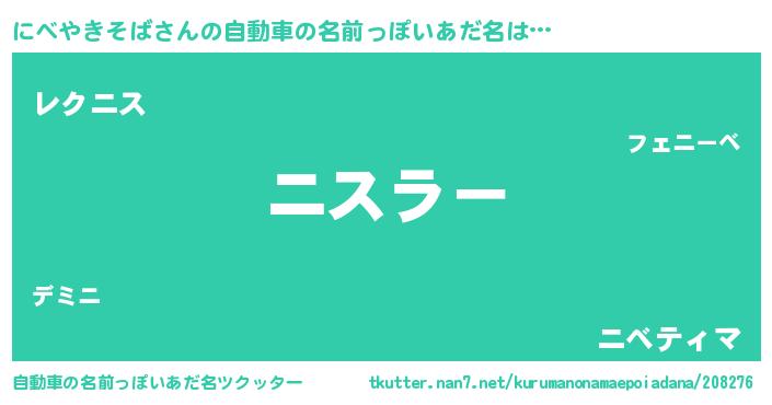 | 欧米人風あだ名 | 『にべやきそばクリステル』 |