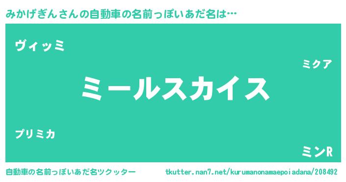 | 男性向けラノベタイトル風あだ名 | 『ミカゲギンスレイヤー』 |