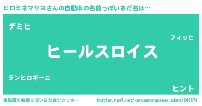 | 胡散臭い通販商品みたいなあだ名 | 『来世でも幸せになれる健康食品…その名も「ヒロミネマサヨ」』 |