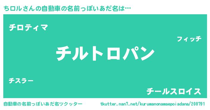 | 女子向けラノベタイトル風あだ名 | 『ちロルの卵を拾いまして』 |