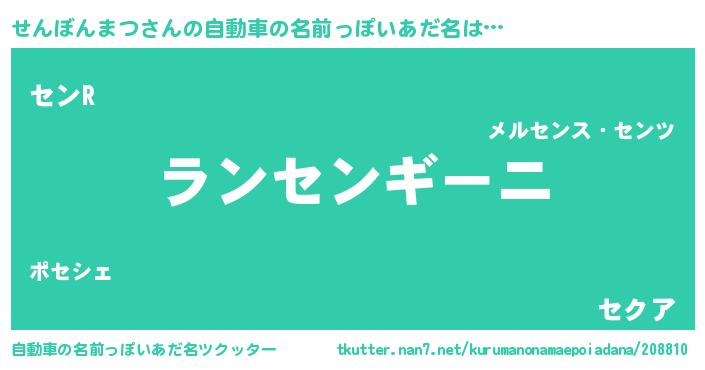 | 男性向けラノベタイトル風あだ名 | 『せんぼんまつに滅ぼされるだけの簡単なお仕事です』 |