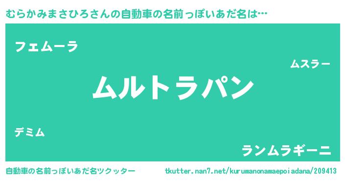 | 意味不明あだ名 | 『とにかく怪しいむらかみまさひろ』 |