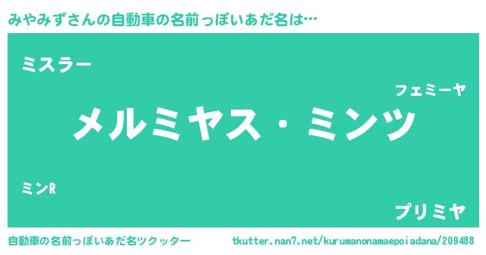 | 意味不明あだ名 | 『自称みやみず』『みやみずフォーエバー』 |