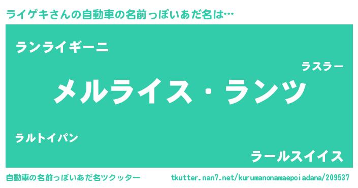 | 意味不明あだ名 | 『自称ライゲキ』『たけのこ科ライゲキ属』 |