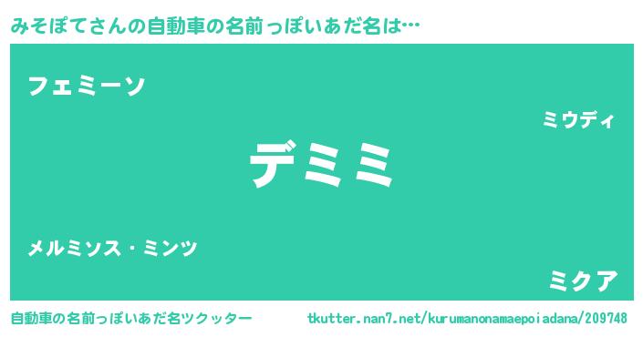 | 男性向けラノベタイトル風あだ名 | 『みそぽてという概念が存在しない退屈な世界 』 |