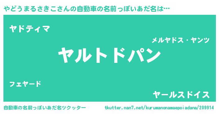 | 意味不明あだ名 | 『とにかく怪しいやどうまるさきこ』 |
