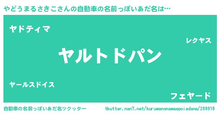| 胡散臭い通販商品みたいなあだ名 | 『信頼と実績のサプリメント…その名も「やどうまるさきこ」』 |