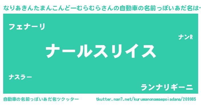 | 男性向けラノベタイトル風あだ名 | 『なりあきんたまんこんどーむらむら~年齢イコール彼女いない歴の魔法使い~』 |