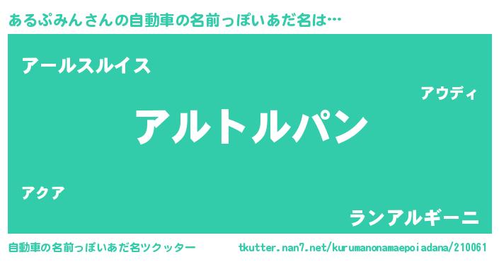 | 意味不明あだ名 | 『とにかく怪しいあるぷみん』 |