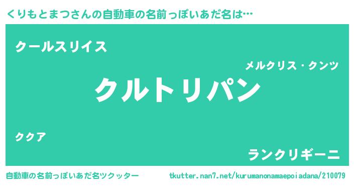 | 欧米人風あだ名 | 『ウサインくりもとまつ』 |
