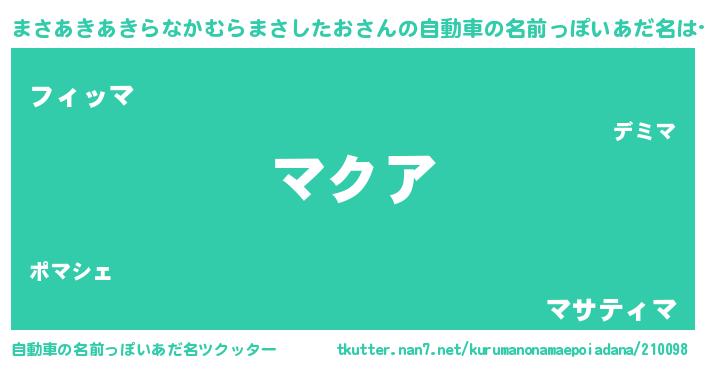 | 欧米人風あだ名 | 『まさあきあきらなかむらまさしたおクリステル』 |