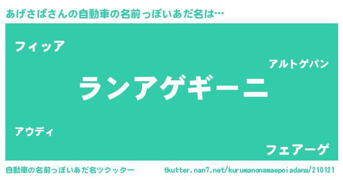 | 欧米人風あだ名 | 『アンジェラ・あげさば』 |