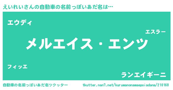 | 男性向けラノベタイトル風あだ名 | 『Re:えいれいから始める異世界生活』 |