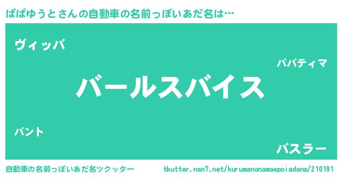 | 胡散臭い通販商品みたいなあだ名 | 『絶対に幸福をもたらす水素水…その名も「ばばゆうと」』 |