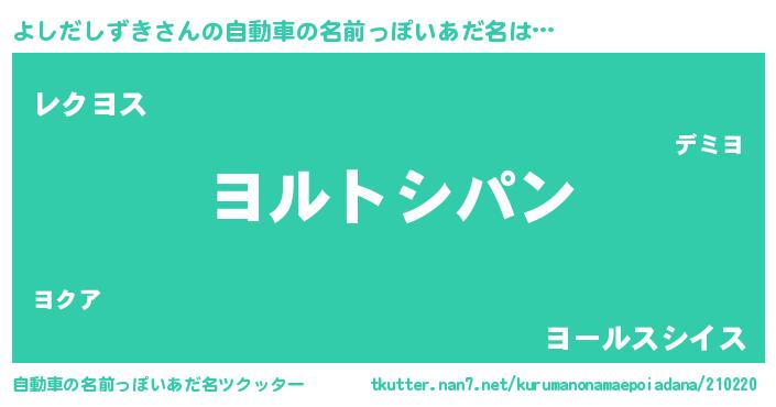 | 意味不明あだ名 | 『とにかく怪しいよしだしずき』 |