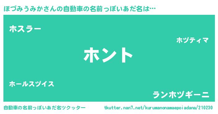 | 欧米人風あだ名 | 『ウサインほづみうみか』 |