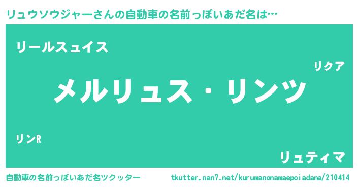 | 男性向けラノベタイトル風あだ名 | 『Re:リュウソウジャーから始める異世界生活』 |