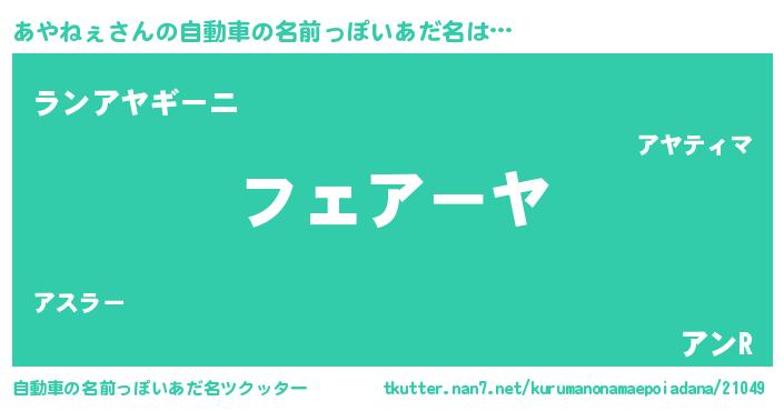 | 欧米人風あだ名 | 『あやねぇ・ステッグマイヤー』 |