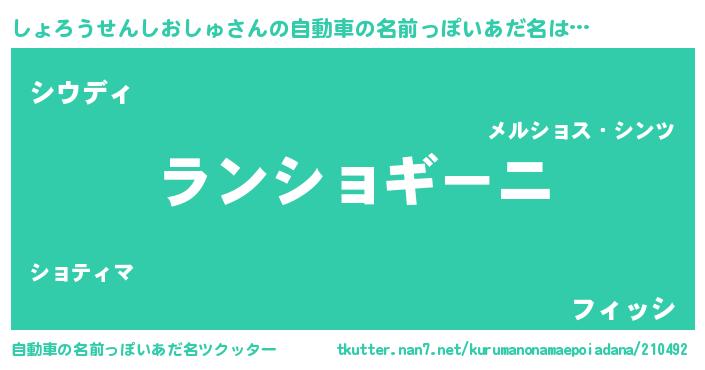 | 意味不明あだ名 | 『住所不定無職しょろうせんしおしゅ(5歳)』 |
