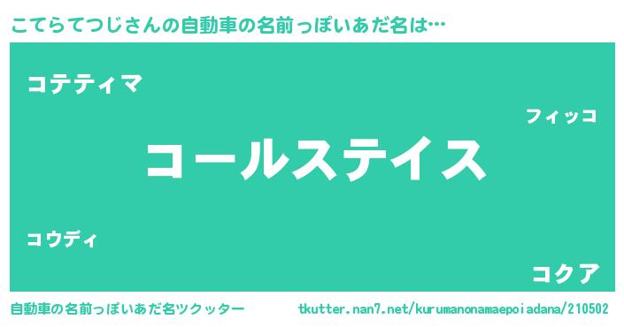 | 男性向けラノベタイトル風あだ名 | 『コテラテツジスレイヤー』 |