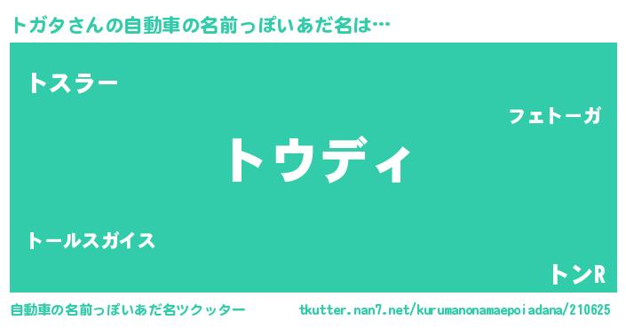 | ヒーロー風カッコイイあだ名 | 『仮面トガダー』『ウルトラトガタマン』 |
