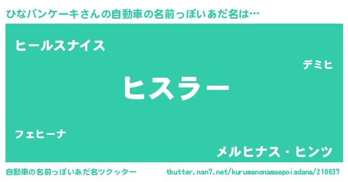 | 欧米人風あだ名 | 『ひなパンケーキクリステル』 |
