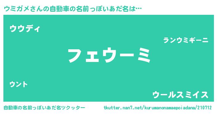 | 意味不明あだ名 | 『住所不定無職ウミガメ(98歳)』 |