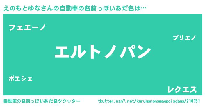 | 女子向けラノベタイトル風あだ名 | 『えのもとゆなの卵を拾いまして』 |