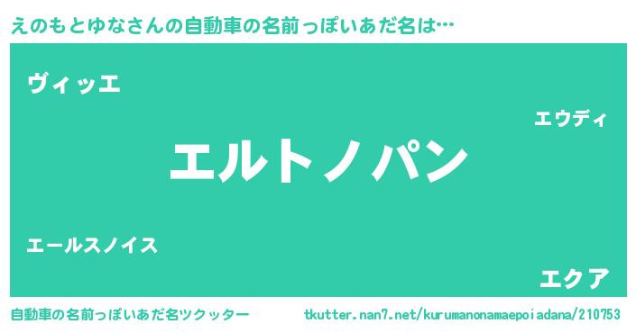 | 欧米人風あだ名 | 『ウサインえのもとゆな』 |
