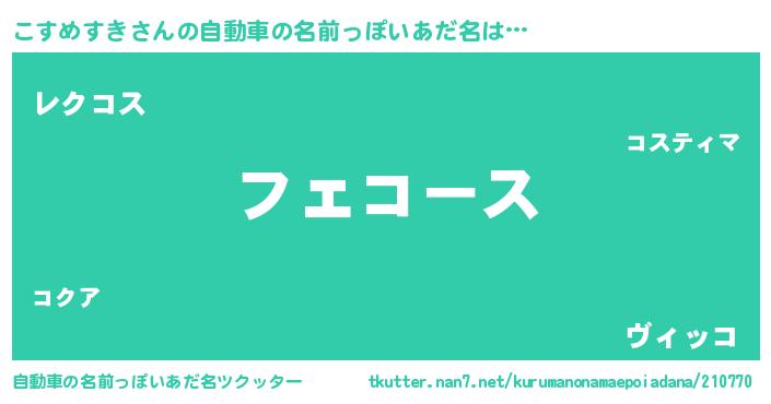 | 欧米人風あだ名 | 『こすめすき・ステッグマイヤー』 |
