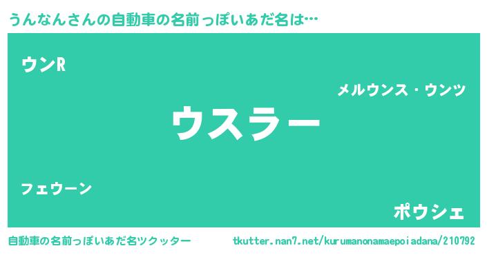 | ポケモン風あだ名 | 『ウンナダネ』『ウックウザ』 |