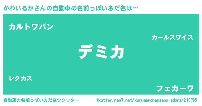 | 男性向けラノベタイトル風あだ名 | 『かわいるかという概念が存在しない退屈な世界 』 |