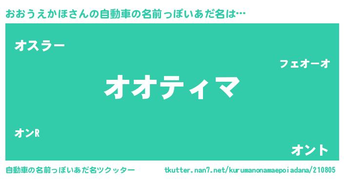 | 男性向けラノベタイトル風あだ名 | 『オオウエカホアートオンライン』 |