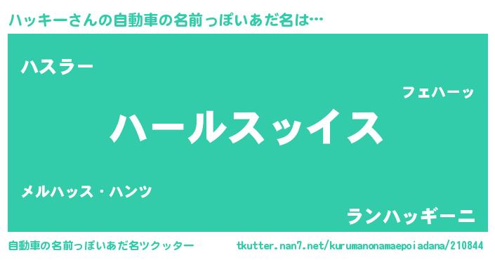 | 女子向けラノベタイトル風あだ名 | 『ハッキーの玉の輿計画!』 |