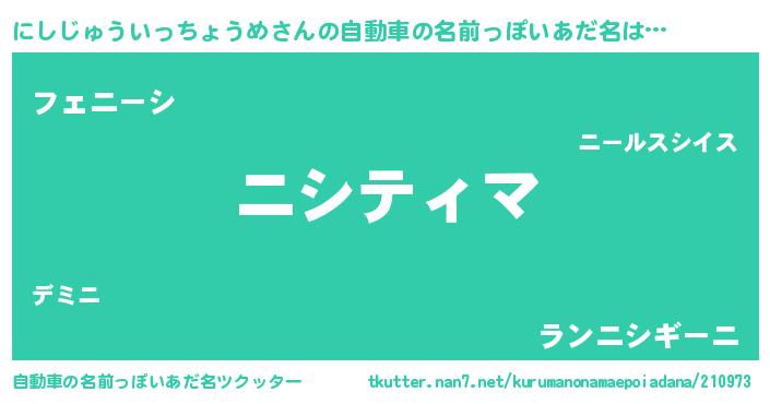 | ヒーロー風カッコイイあだ名 | 『スーパーニシジュウイッチョウメ』 |