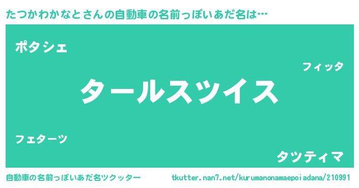 | 男性向けラノベタイトル風あだ名 | 『転生したらたつかわかなとだった件』 |