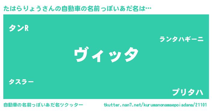 | 女子向けラノベタイトル風あだ名 | 『たはらりょうの契約王妃』 |