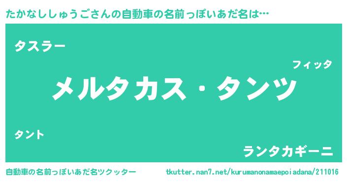 | 意味不明あだ名 | 『自称たかなししゅうご』 |