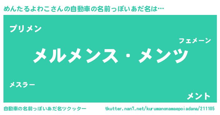 | ヘコむあだ名 | 『めんっふぃ~』『めんを』 |