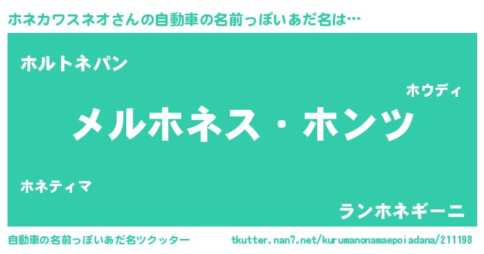 | 欧米人風あだ名 | 『ケンブリッジホネカワスネオ』 |