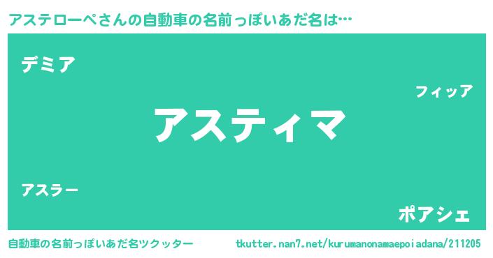 | ヒーロー風カッコイイあだ名 | 『スーパーアステローペ』『仮面アスダー』 |
