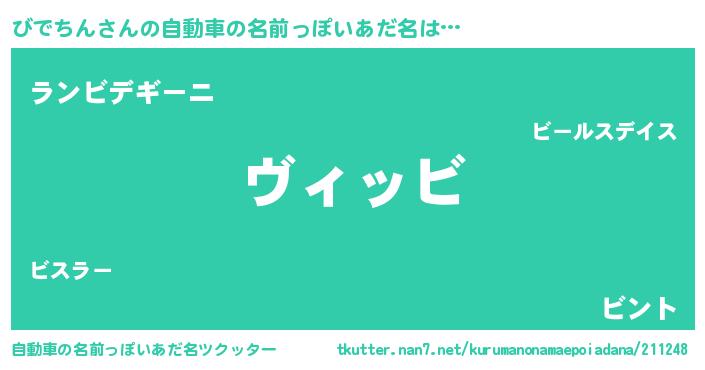 | ヘコむあだ名 | 『びでちん(遠い目)』『びでを』 |