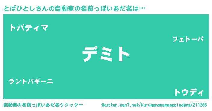 | 男性向けラノベタイトル風あだ名 | 『とばひとしという概念が存在しない退屈な世界 』 |