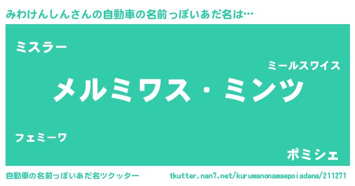 | 男性向けラノベタイトル風あだ名 | 『Re:みわけんしんから始める異世界生活』 |