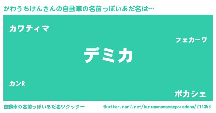| 女子向けラノベタイトル風あだ名 | 『かわうちけんの契約王妃』 |