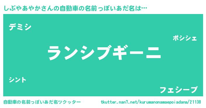 しぶやあやかさんの自動車の名前っぽいあだ名をツクッター!