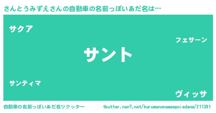 | 意味不明あだ名 | 『とにかく怪しいさんとうみずえ』 |
