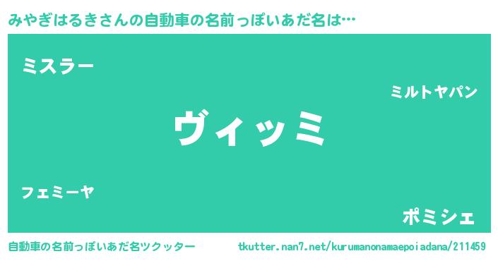 | 女子向けラノベタイトル風あだ名 | 『みやぎはるきの契約王妃』 |