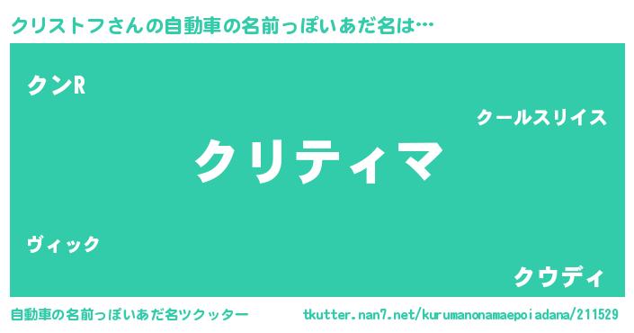| ヘコむあだ名 | 『クリにゅー』『クリストフ(小並感)』 |