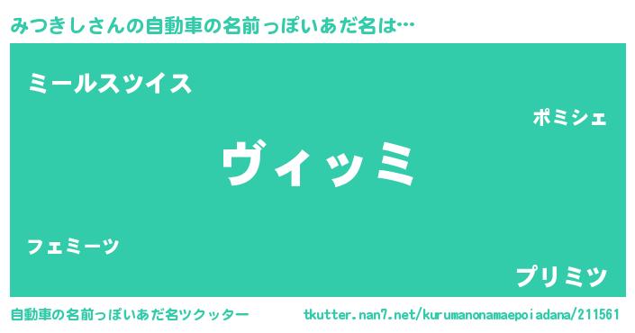みつきしさんの自動車の名前っぽいあだ名をツクッター!